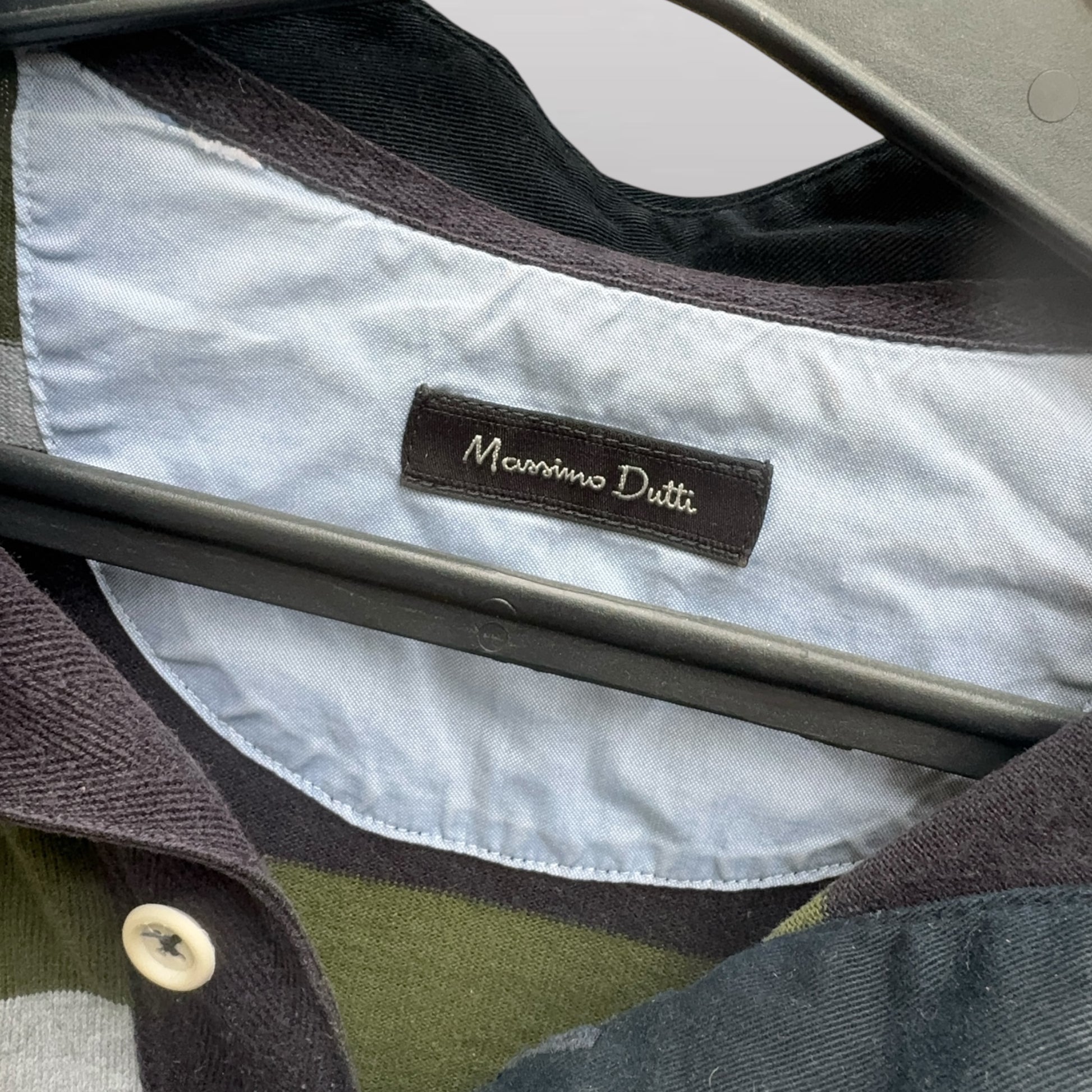 This Massimo Dutti rugby jersey features bold, horizontal stripes in classic colours of green, navy blue and grey.