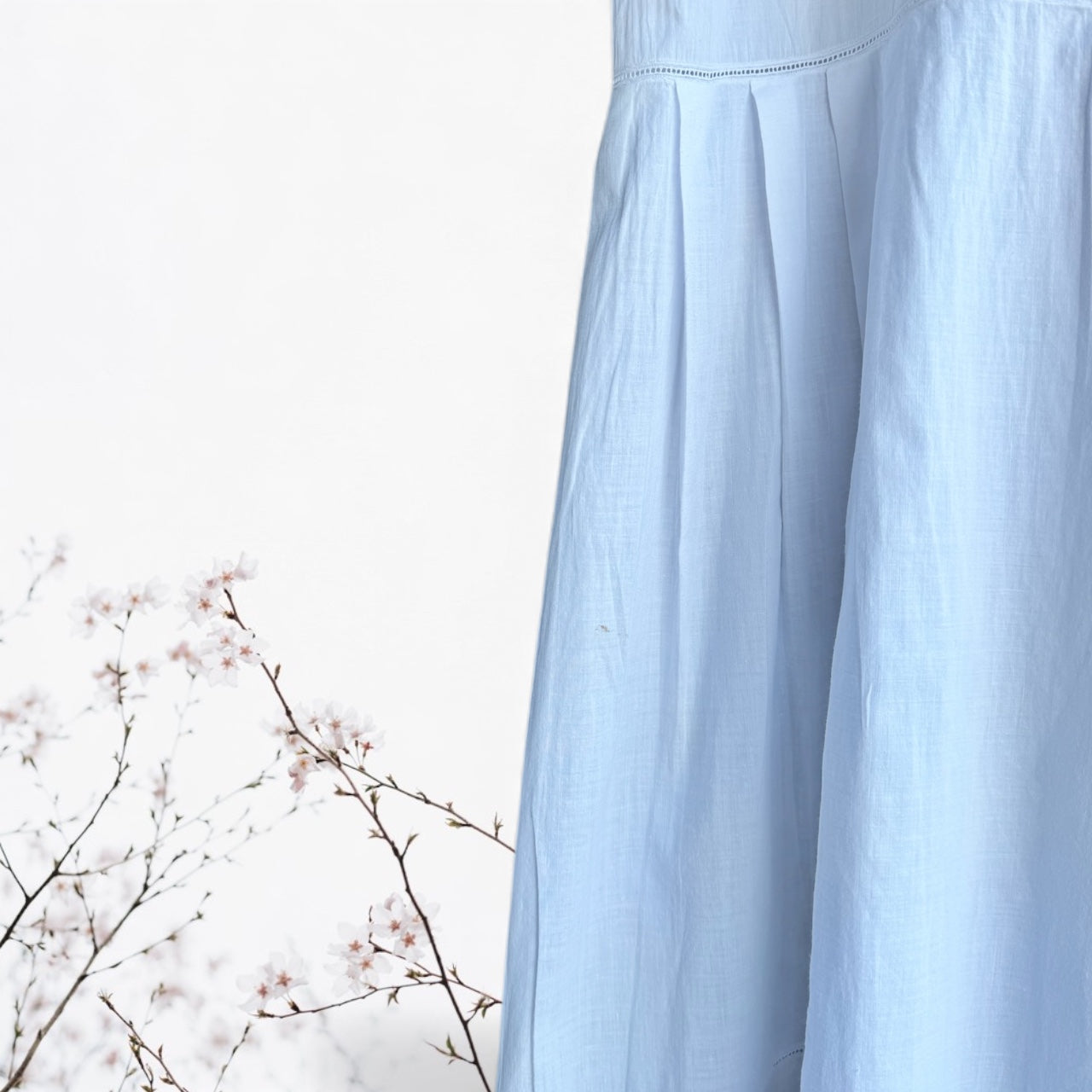 Delicate details of pleats and cotton, lace, and tiny button back closure in a vintage cotton .