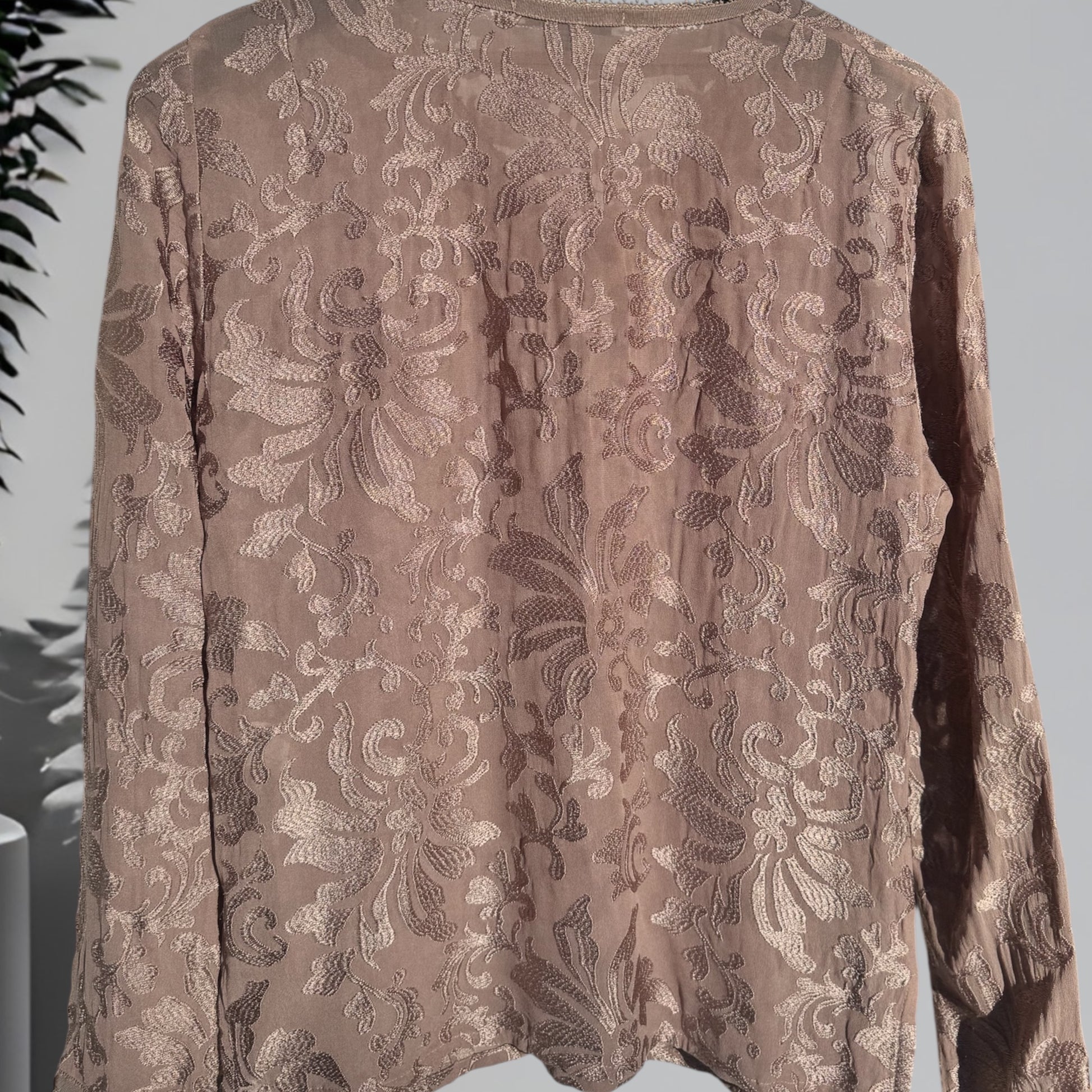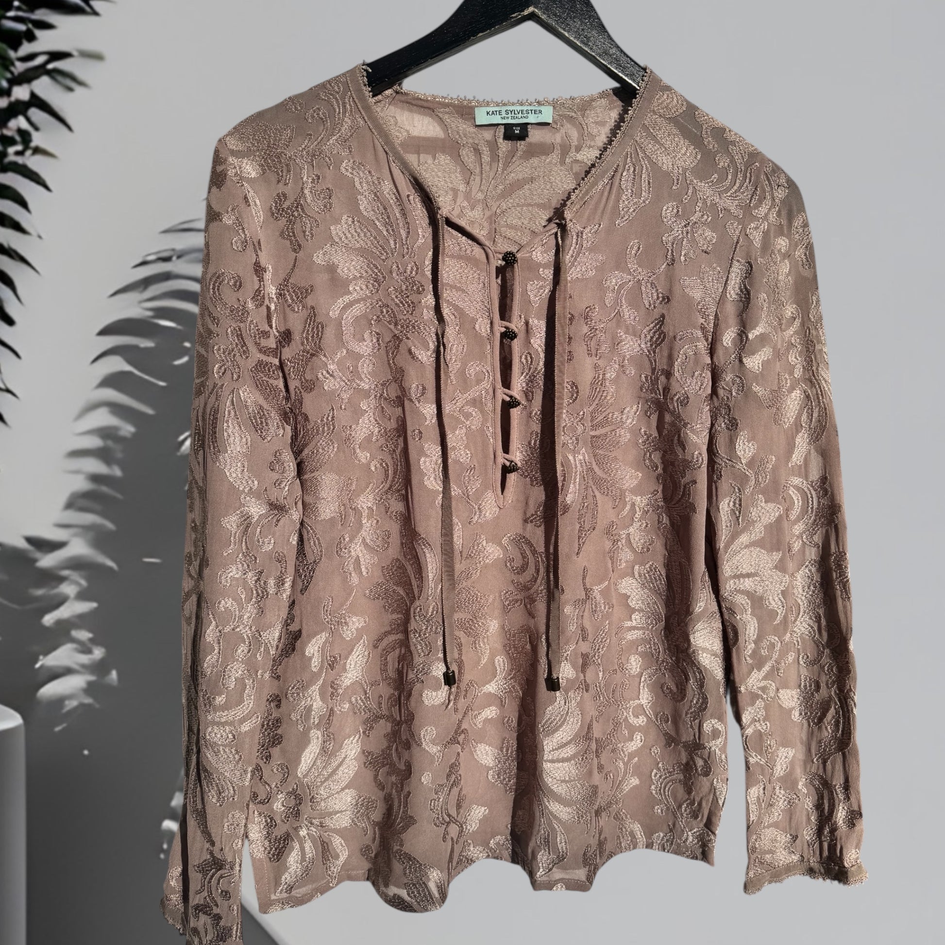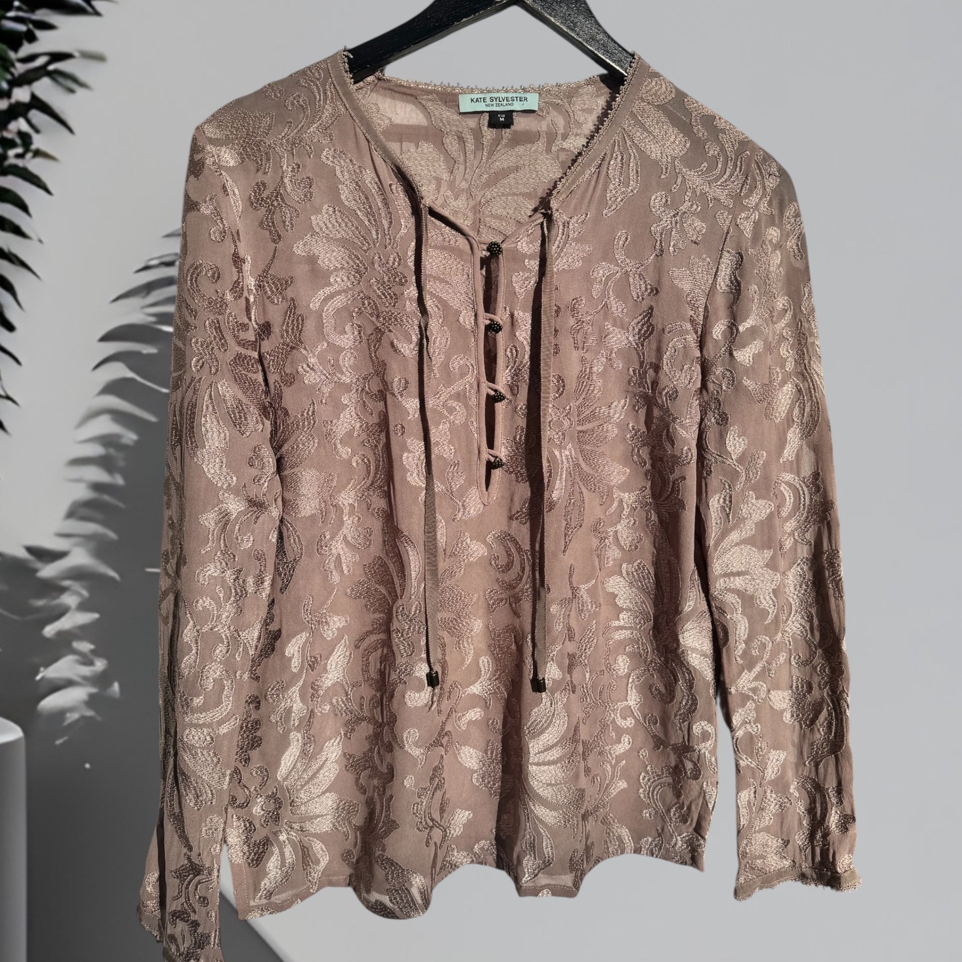 A delicious muted mauve brocade top with a relaxed bohemian feel from iconic nz designer Kate Sylvester.