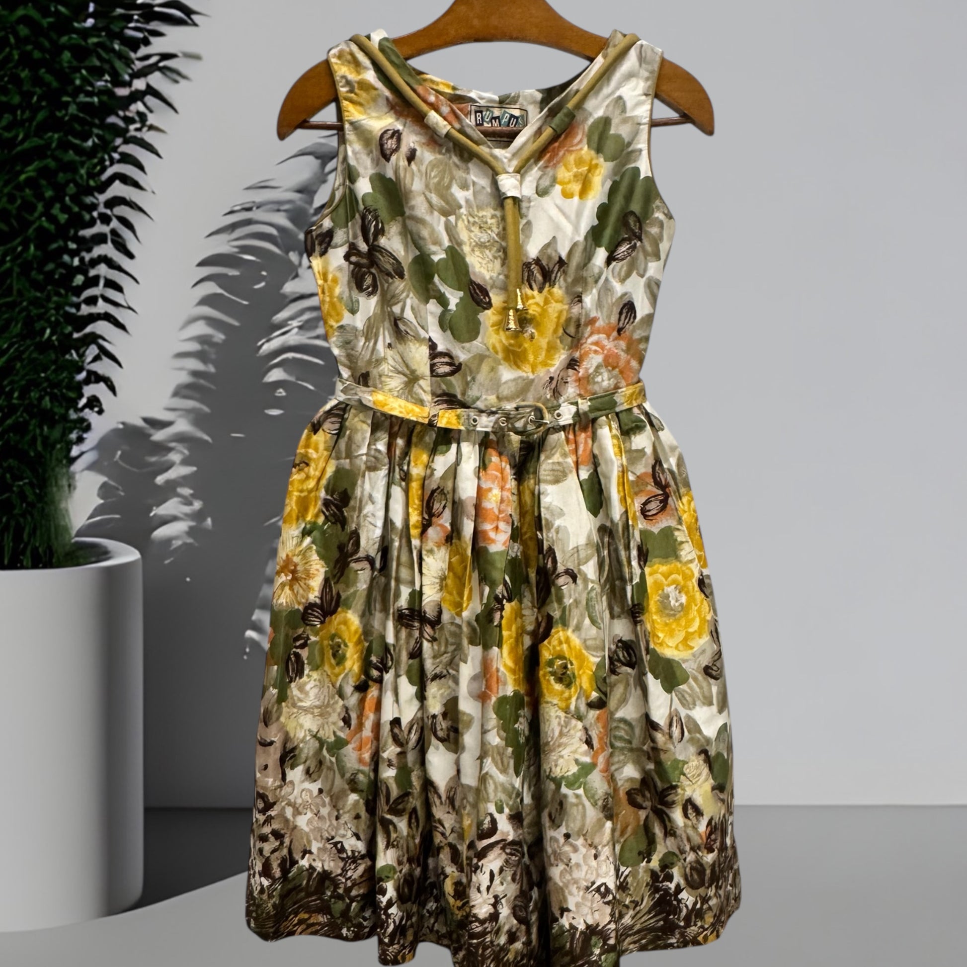 This 1950’s/60’s NZ made child’s vintage dress is such a sweetheart. Designed in exactly the same cut and style, including a boarder print that a mother of that era would have worn.